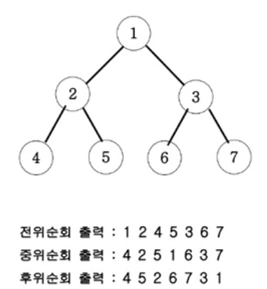 전위순회는 '부모 - 왼쪽 - 오른쪽'을 말한다. 1(부모) - 2(왼쪽) - 4(왼쪽) - 5(오른쪽) - 3(오른쪽) - 6(왼쪽) - 7(오른쪽)이 된다.